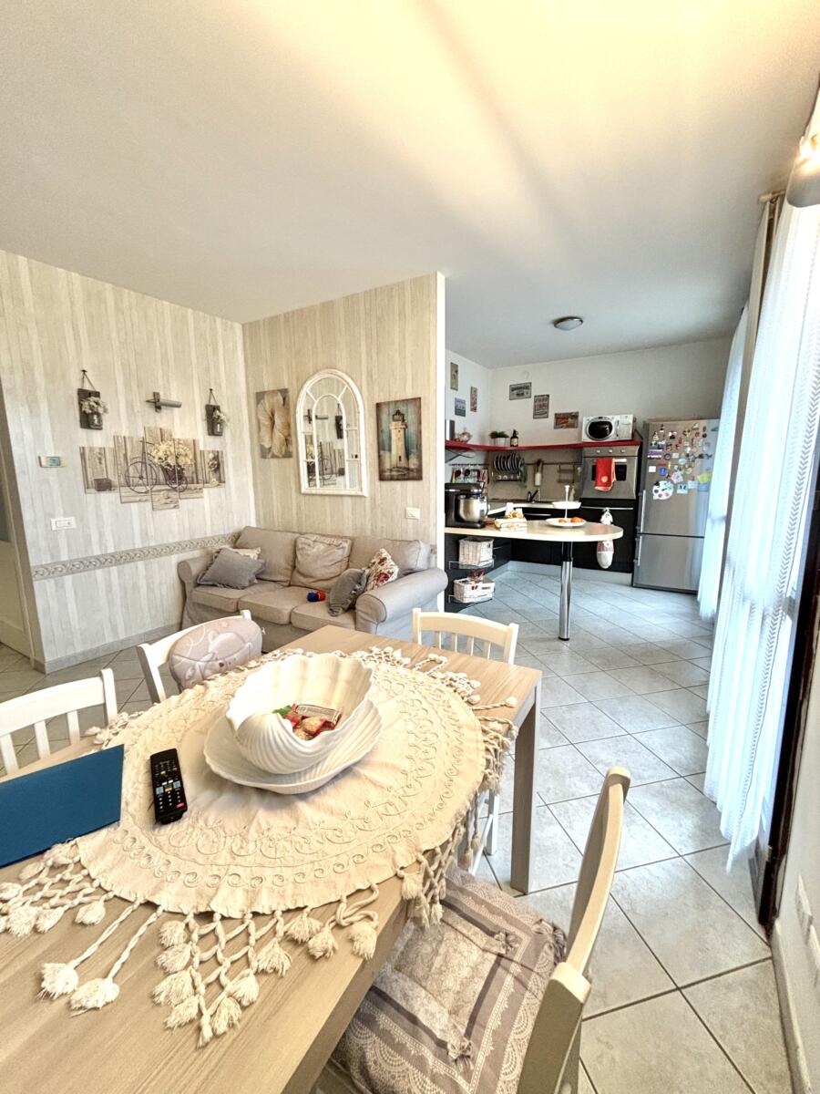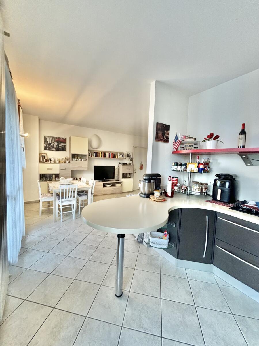 L’ingresso ti accoglie in un luminoso soggiorno, ampio e accogliente, che si fonde perfettamente con una cucina abitabile iopen space, ideale per momenti di convivialità e relax. Il terrazzino privato, che si apre sul soggiorno, è il luogo perfetto per godersi il tempo libero all’aria aperta.
